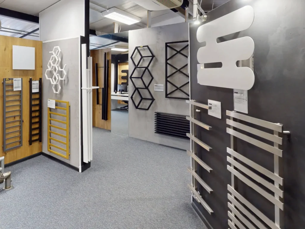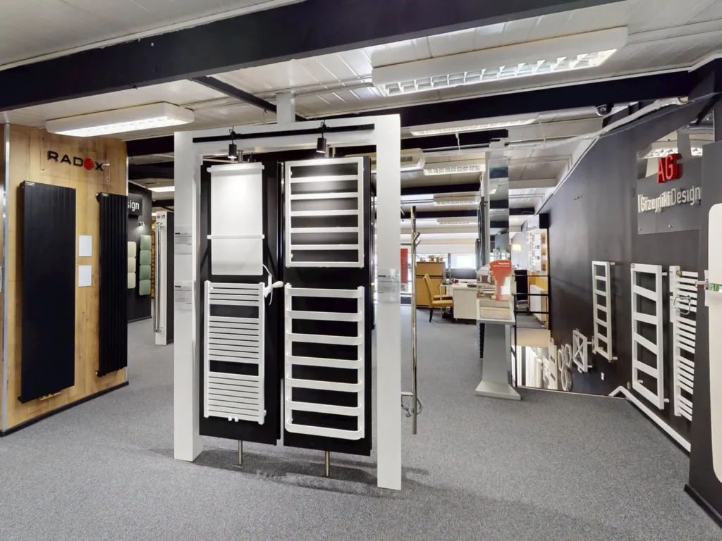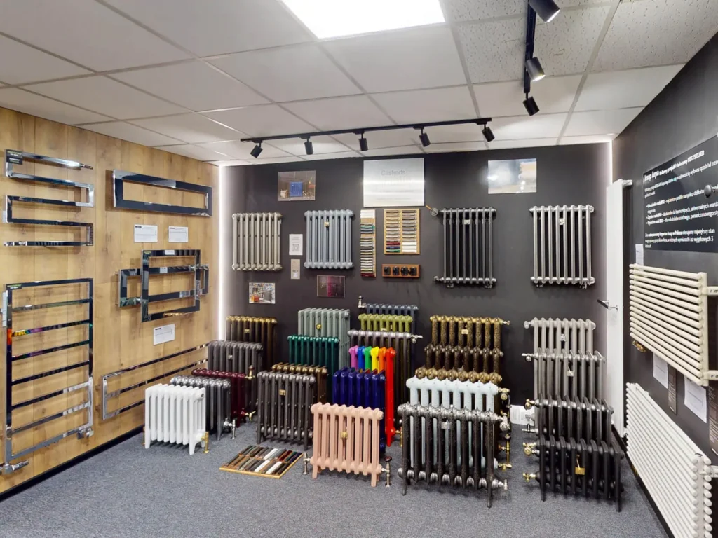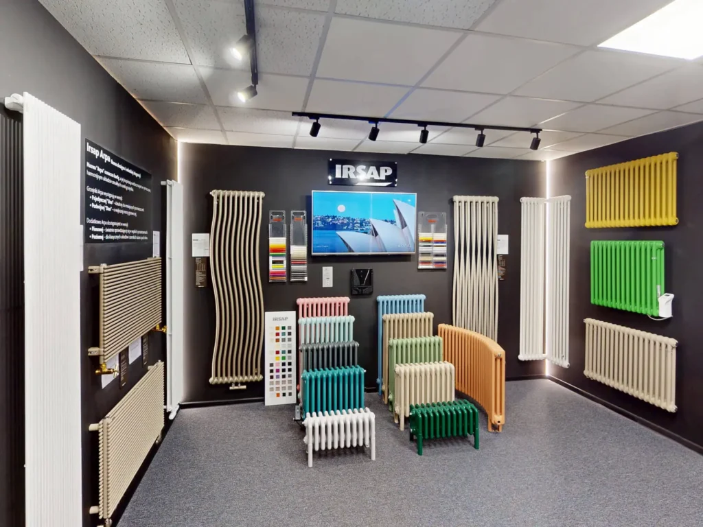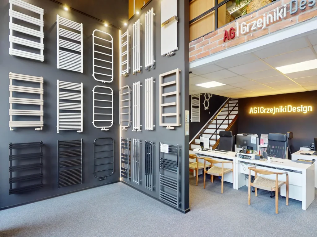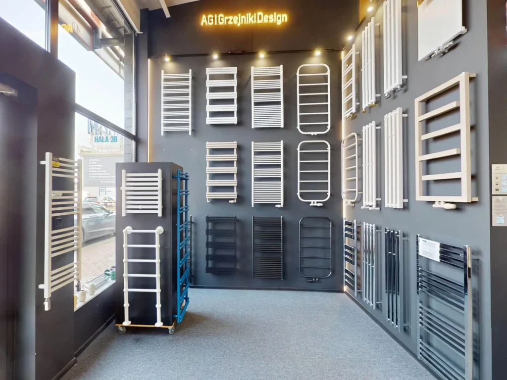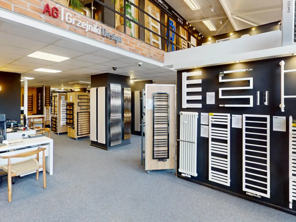 Nasz salon w Warszawie to największa ekspozycja grzejników dekoracyjnych w kraju – setki modeli w różnych rozmiarach, kolorach i wykończeniach na ponad 300 m2 powierzchni. Regularnie aktualizujemy ekspozycję o najnowsze kolekcje, dzięki czemu nie kupujesz w ciemno, ale możesz zobaczyć, dotknąć i porównać produkty przed wyborem.
